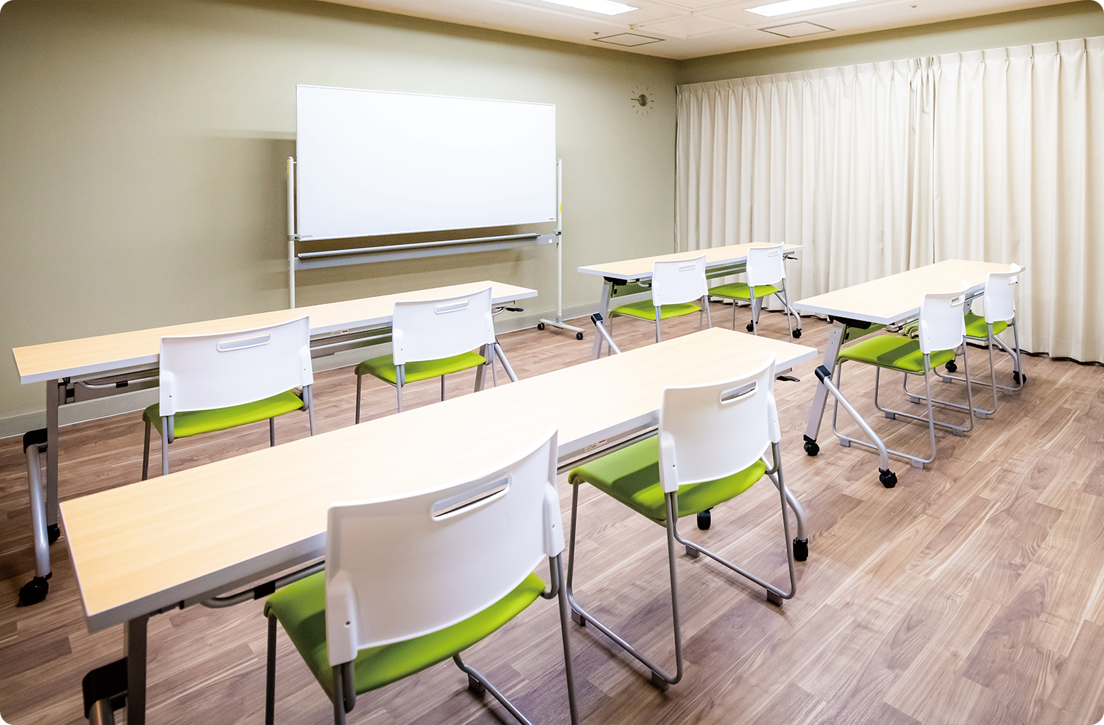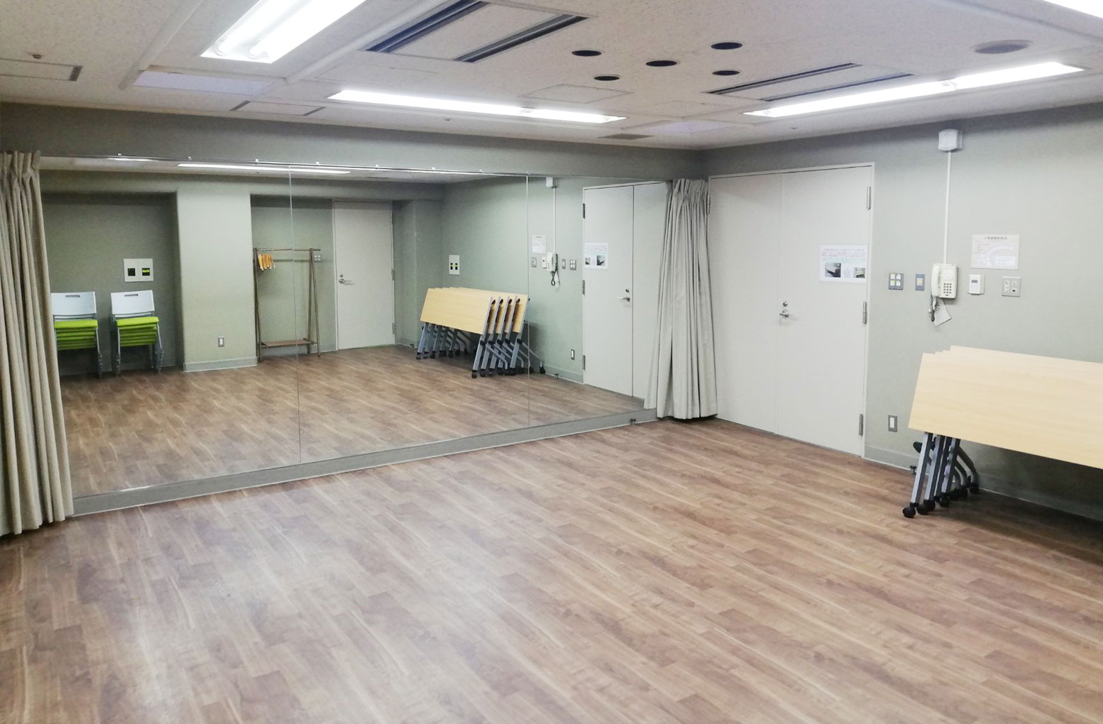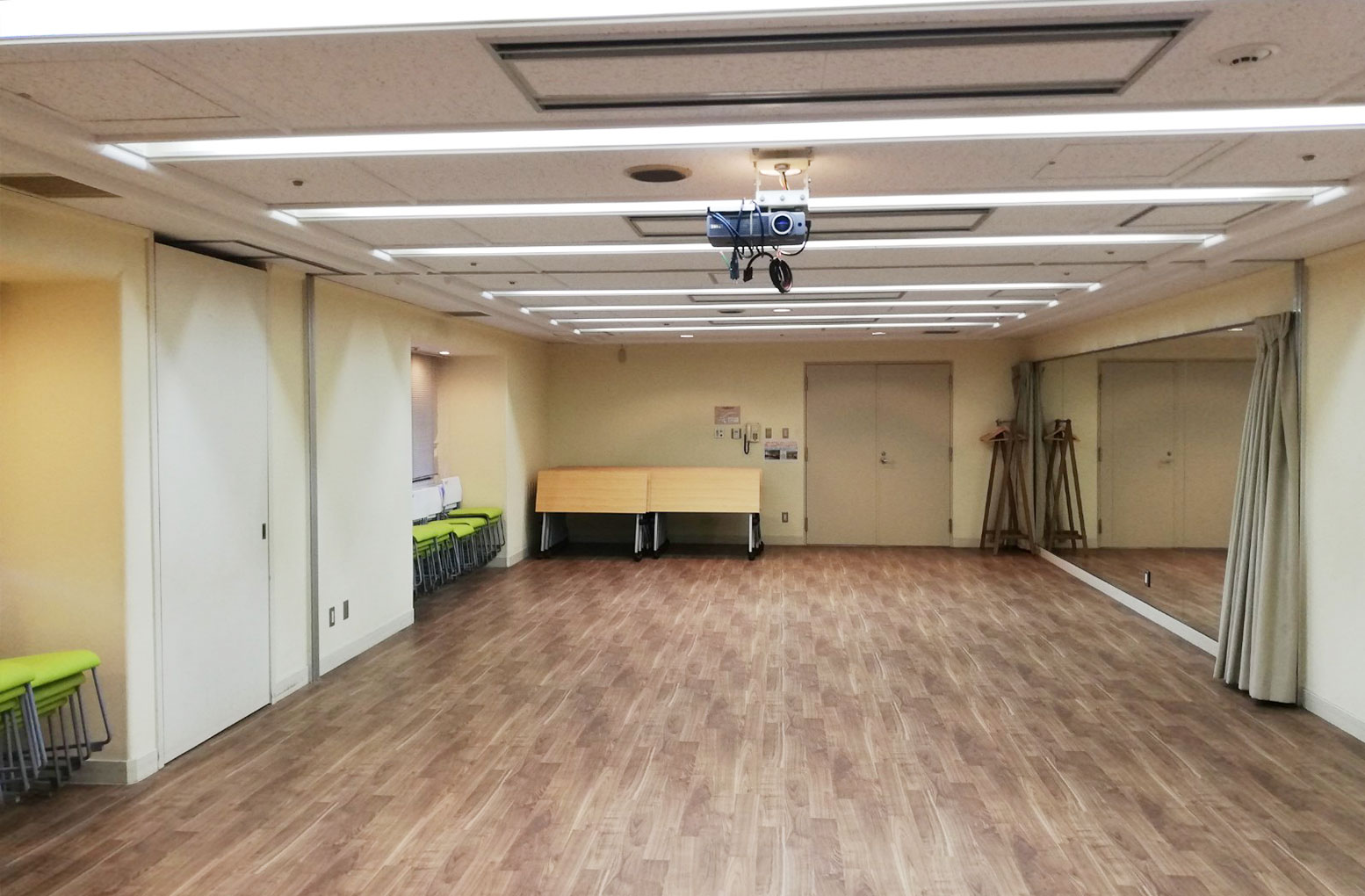 そのうちの2部屋は、プロジェクター、ホワイトボードなど会議やミーティングに必要な備品をご利用いただけるミーディングルームで、備え付けの鏡も備わっている為、ダンス合宿などにも最適です。