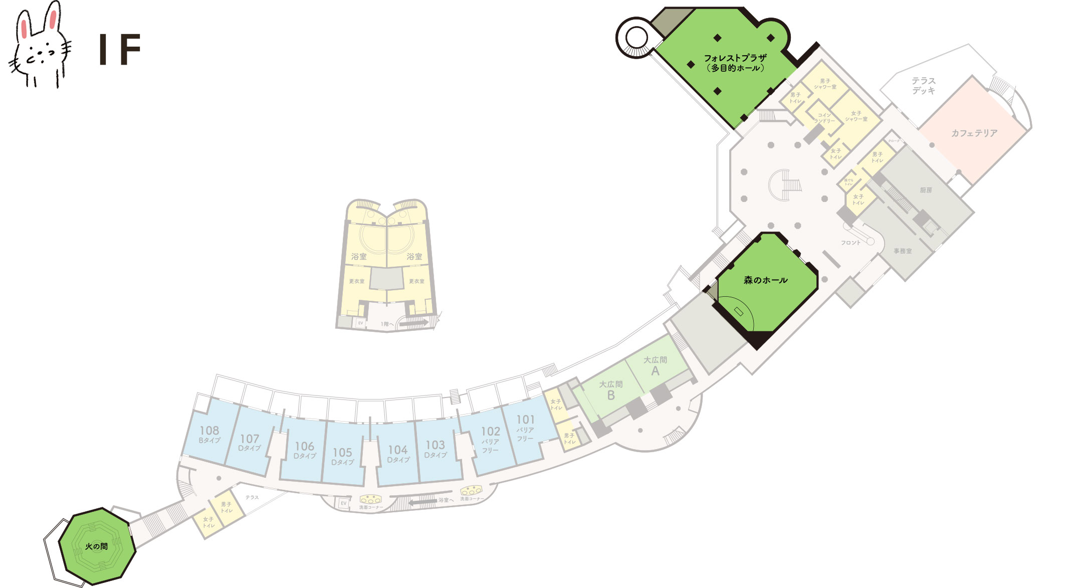 中央で薪を燃やして焚き火ができる八角形の団欒スペースです。研修やイベントでの貸切でもご利用いただけます。※空調完備