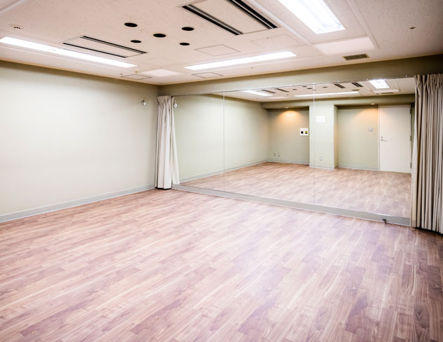 備え付け鏡があり、ダンスやヨガなどの練習や発表会にご利用いただけます。※空調完備